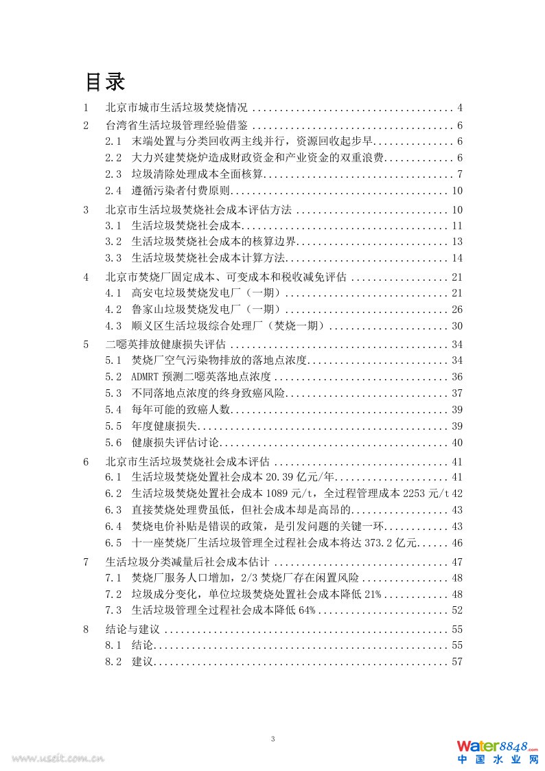 《北京市城市生活垃圾焚燒社會成本評估報告》目錄