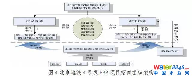 4號(hào)線PPP項(xiàng)目實(shí)施過程大致可分為兩個(gè)階段,第一階段為由北京市發(fā)改委主導(dǎo)的實(shí)施方案編制和審批階段;第二階段為由北京市交通委主導(dǎo)的投資人競(jìng)爭(zhēng)性談判比選階段。