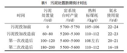 從統(tǒng)計數(shù)據(jù)來看,經(jīng)過第二次改造后污泥處置量得到進(jìn)一步提高,同時窯系統(tǒng)熟料臺時產(chǎn)量趨于穩(wěn)定,并提產(chǎn)至5600t/d,氨水使用量減少近30%,效果非常明顯。