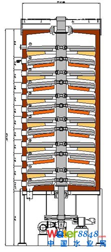 多膛爐又稱多段爐、耙式爐,爐體采用圓形鋼制外殼,內襯高溫耐火材料,并由耐火磚分隔成若干層爐床,爐床為耐火磚砌筑自支撐結構,因此能承受高溫。