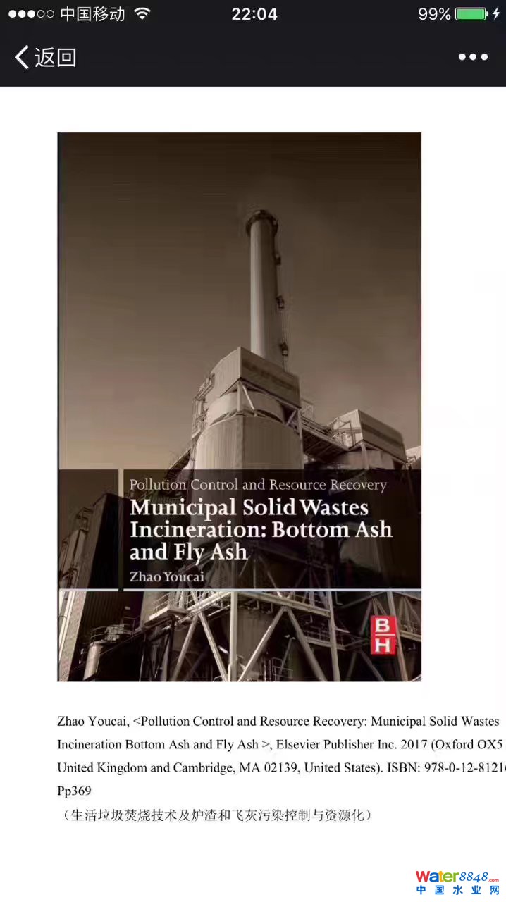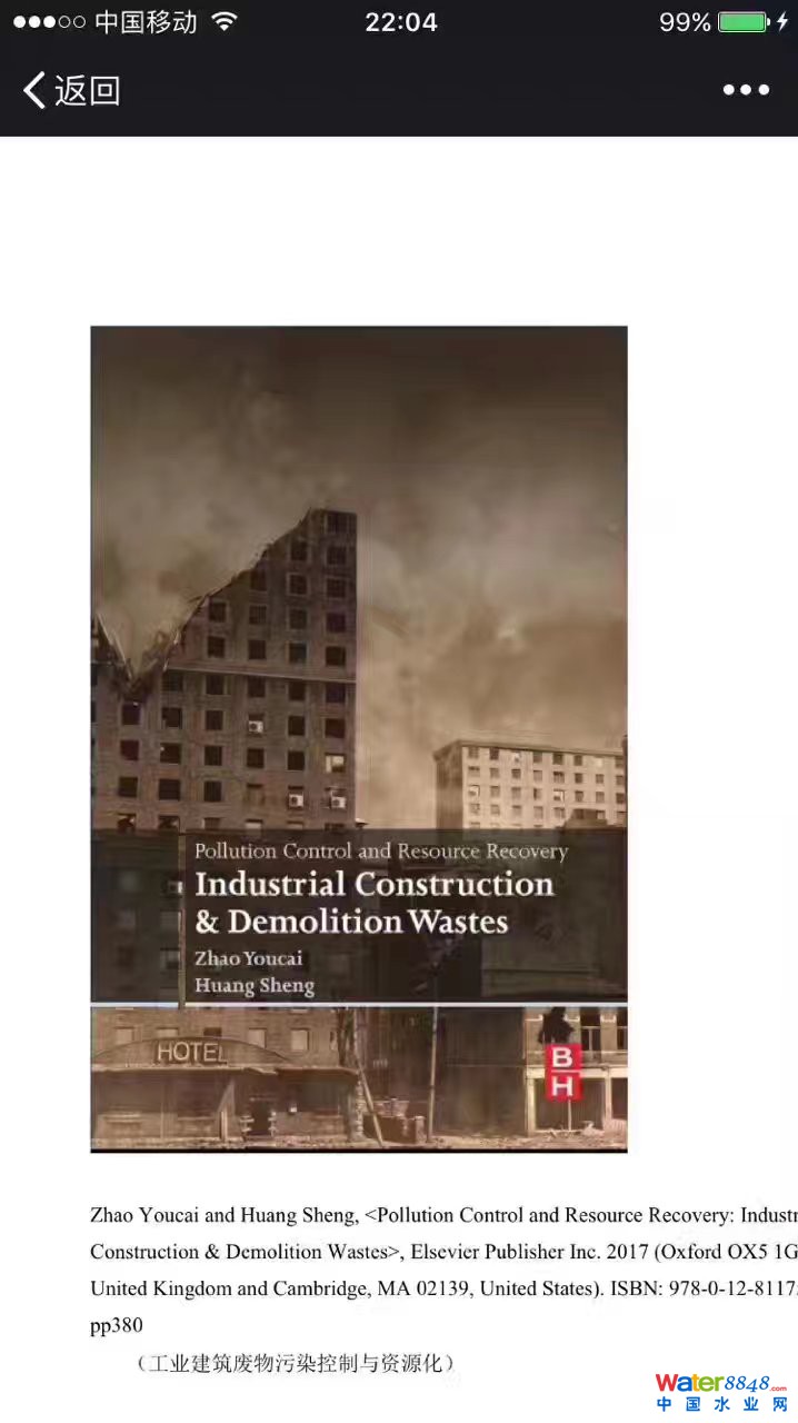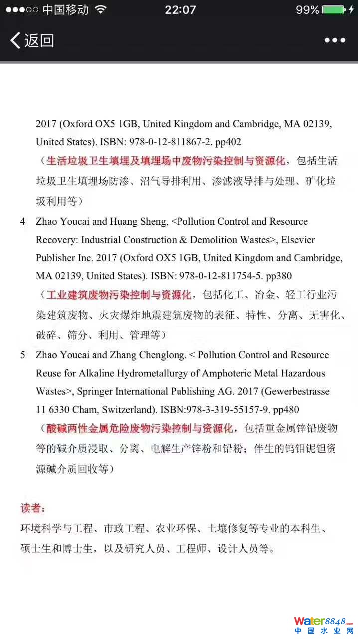 5 Zhao Youcai and Zhang Chenglong. < Pollution Control and Resource Reuse for Alkaline Hydrometallurgy of Amphoteric Metal Hazardous Wastes>, Springer International Publishing AG. 2017 (Gewerbestrasse 11 6330 Cham, Switzerland). ISBN:978-3-319-55157-9. pp480