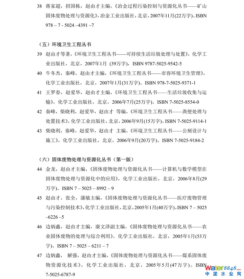 核心提示:城市污泥-生活垃圾焚燒-生活垃圾衛(wèi)生填埋-工業(yè)建筑廢物-重金屬危險廢物英文學術專著及其采購方法