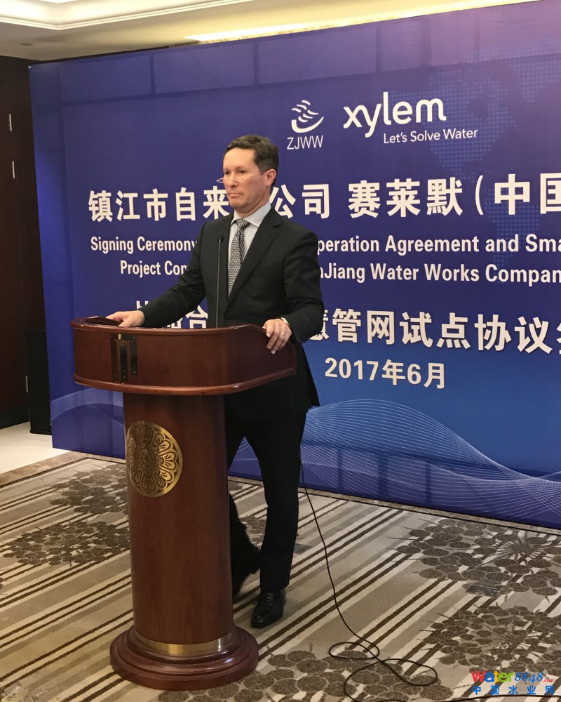 作為中國低碳城市發(fā)展先鋒和海綿城市試點(diǎn),鎮(zhèn)江市于近年對其基礎(chǔ)設(shè)施,特別是水基礎(chǔ)設(shè)施進(jìn)行了全面的技術(shù)提升和改造,正在打造一個(gè)低碳、高效和智慧城市管理體系。 賽萊默公司憑借其百年技術(shù)創(chuàng)新和國內(nèi)外的安裝經(jīng)驗(yàn),成為鎮(zhèn)江水基礎(chǔ)設(shè)施改造的最佳技術(shù)合作伙伴。賽萊默公司CEO潘德克在簽字儀式上發(fā)表講話時(shí)指出,“我很高興來到美得讓人吃“醋”的鎮(zhèn)江并與鎮(zhèn)江市自來水公司簽署全面戰(zhàn)略合作意向書。我非常欣賞鎮(zhèn)江市政府與領(lǐng)先企業(yè)在建設(shè)高效低碳城市中所表現(xiàn)出的驚人智慧和行動(dòng)魄力,賽萊默Visenti智慧水網(wǎng)技術(shù)在新加坡,中東,澳洲以及歐洲擁有相當(dāng)成功的經(jīng)驗(yàn),賽萊默公司將利用我們的技術(shù)優(yōu)勢,盡最大努力支持鎮(zhèn)江的水基礎(chǔ)設(shè)施建設(shè)”。鎮(zhèn)江市自來水公司總經(jīng)理陳義春先生對賽萊默CEO一行前來鎮(zhèn)江表示歡迎并指出,“水十條”為我們的供水服務(wù)提出了新的要求,我們希望在國家規(guī)定的時(shí)間內(nèi)實(shí)現(xiàn)達(dá)標(biāo),這是一件造福社會(huì)和百姓的大事,相信我們與賽萊默公司的合作會(huì)結(jié)出豐碩的成果”。