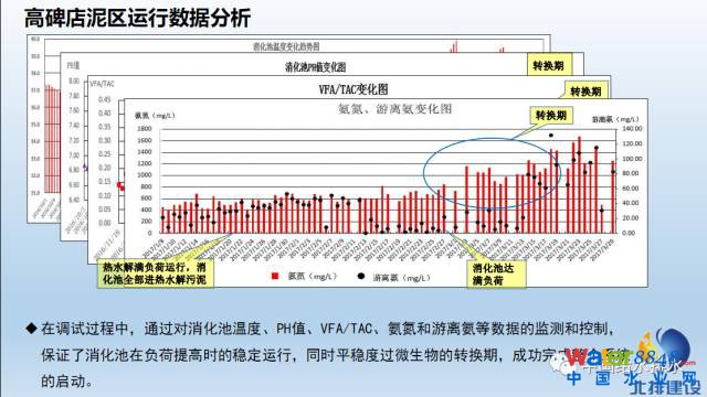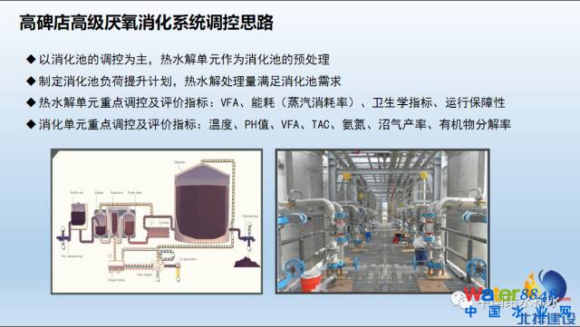 第二部分是我們調(diào)試的運(yùn)行分析。在調(diào)試過程之中,我們確定了以消化池調(diào)控為主,熱水解單元作為消化池的預(yù)處理,制定消化池負(fù)荷提升計(jì)劃,熱水解處理量滿足消化池需求,制定熱水解單元調(diào)控及評(píng)價(jià)指標(biāo),消化單元重點(diǎn)調(diào)控及評(píng)價(jià)指標(biāo)。