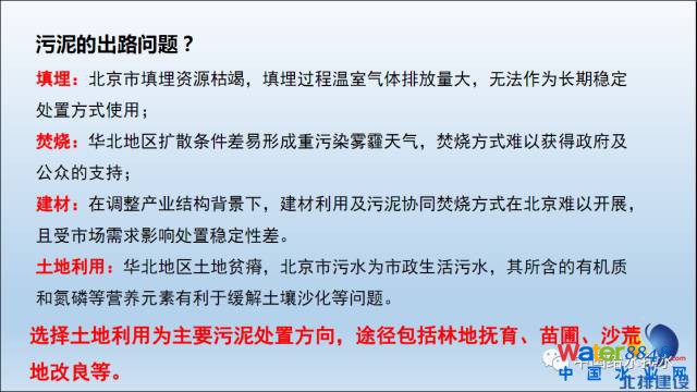 從污泥的處置的角度上來說,填埋、焚燒、建材都無法對(duì)污泥進(jìn)行長(zhǎng)期穩(wěn)定的處置,同時(shí)也存在一定的風(fēng)險(xiǎn)。北京市污水為市政污水,污泥所含的有機(jī)物和氮磷等營(yíng)養(yǎng)元素非常有利于緩解土壤沙化等問題,因此我們選擇土地利用作為主要的污泥處置方向。