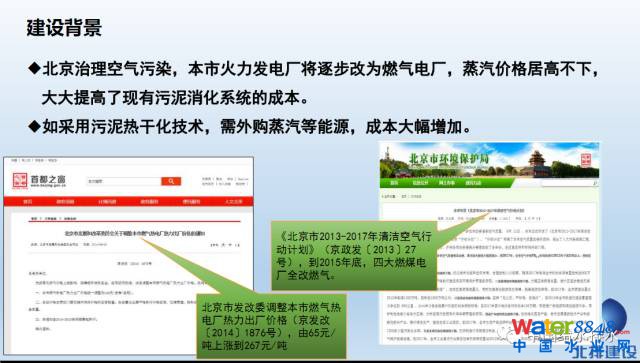 同時(shí)因?yàn)楸本┲卫砜諝馕廴荆本┑幕鹆Πl(fā)電廠將逐步改為燃?xì)怆姀S,蒸汽價(jià)格居高不下,導(dǎo)致現(xiàn)有污泥消化系統(tǒng)的成本將增高。同時(shí)如果采用污泥的熱干化技術(shù),需要大量外購(gòu)蒸汽等能源,未來的運(yùn)行成本將大幅度增加。