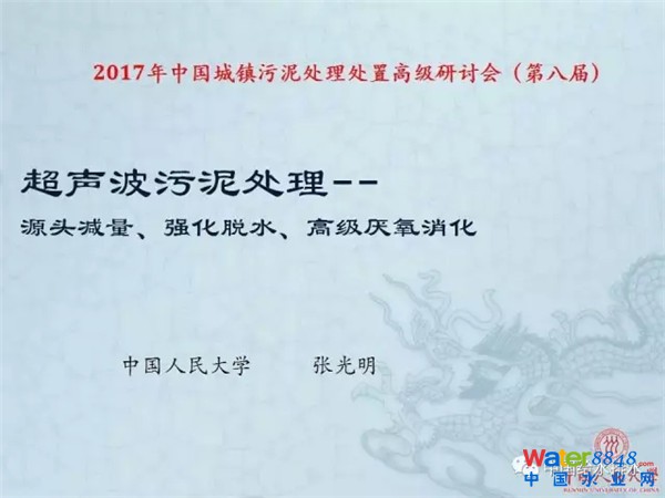 張光明:謝謝主持人郝老師,非常高興今天有這樣一個(gè)機(jī)會(huì)到這個(gè)會(huì)場(chǎng)來(lái)跟各位同行匯報(bào)一下我的課題組在污泥領(lǐng)域做的一些工作。我這個(gè)報(bào)告題目是《超聲波污泥處理——源頭減量、強(qiáng)化脫水、高級(jí)厭氧消化三部分》,我來(lái)自中國(guó)人民大學(xué)。