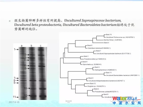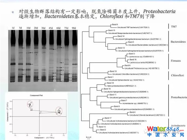這里我們也簡(jiǎn)單的分析了一下它的成分,發(fā)現(xiàn)主要是來(lái)自EPS里面的多糖。(詳見(jiàn)PPT)部分選擇性破解作為內(nèi)碳源放回去,放回去之后做了一下它的效果,發(fā)現(xiàn)它對(duì)脫氮是有一個(gè)明顯的提升,對(duì)COD和磷沒(méi)什么影響。對(duì)微生物的改變是可以檢測(cè)到一個(gè)改變,就是脫氮除磷菌豐度上升,這個(gè)也很容易理解,因?yàn)樘荚炊嗔,肯定微生物?huì)活得更舒服一點(diǎn)。
