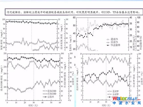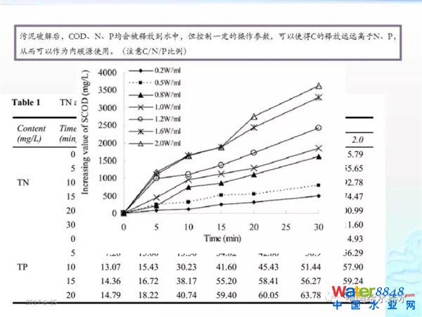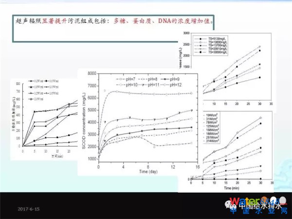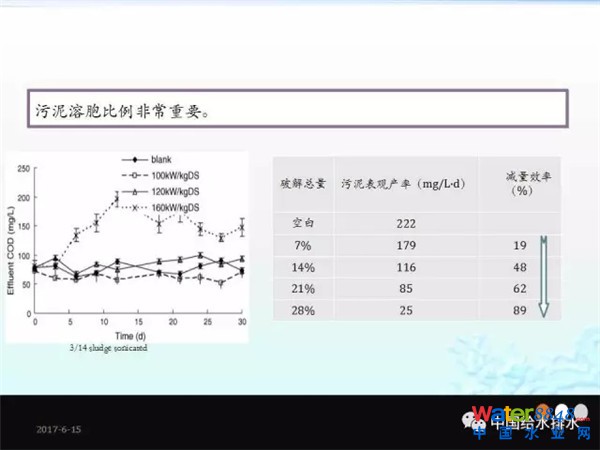 (詳見(jiàn)PPT)釋放的物質(zhì)里面有多糖、蛋白質(zhì),尤其注意最后一張DNA。因?yàn)镈NA是細(xì)胞遺傳物質(zhì),它的釋放就說(shuō)明里面的微生物被徹底破壞掉、被釋放出來(lái)了,這里非常典型的就是溶解性COD,就是SCOD,就是水里面的COD,不過(guò)在污泥里面另外起來(lái)一個(gè)名字叫SCOD,就有一個(gè)極大地提高。