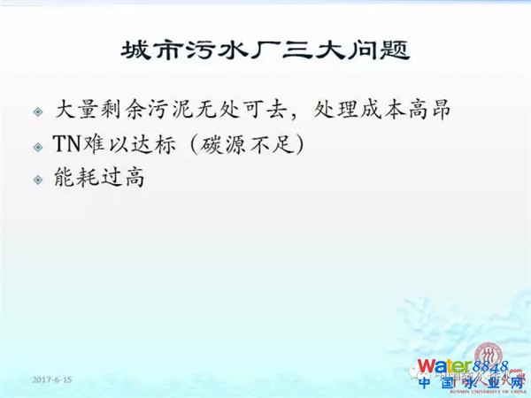 現(xiàn)在城市污水處理廠整體來(lái)說(shuō)面臨三大問(wèn)題:第一是大量剩余污泥無(wú)處可去,它的處理處置成本非常高。第二是總氮難以達(dá)標(biāo),總氮難以達(dá)標(biāo)的一個(gè)根本問(wèn)題是進(jìn)水的COD太低、碳源不足。第三個(gè)是問(wèn)題我們的能耗過(guò)高。在城市污水處理廠面臨的三大問(wèn)題中,我們的超聲波技術(shù)都能找到自己的用武之地。