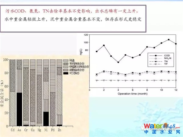 (詳見(jiàn)PPT)順便做了一個(gè)重金屬,發(fā)現(xiàn)出水重金屬的含量基本不變,但是污泥中的重金屬,存在形式由于施加了超聲波這樣一個(gè)影響之后,它的存在形式更加穩(wěn)定。對(duì)于含重金屬的水來(lái)說(shuō)是一個(gè)有利的。