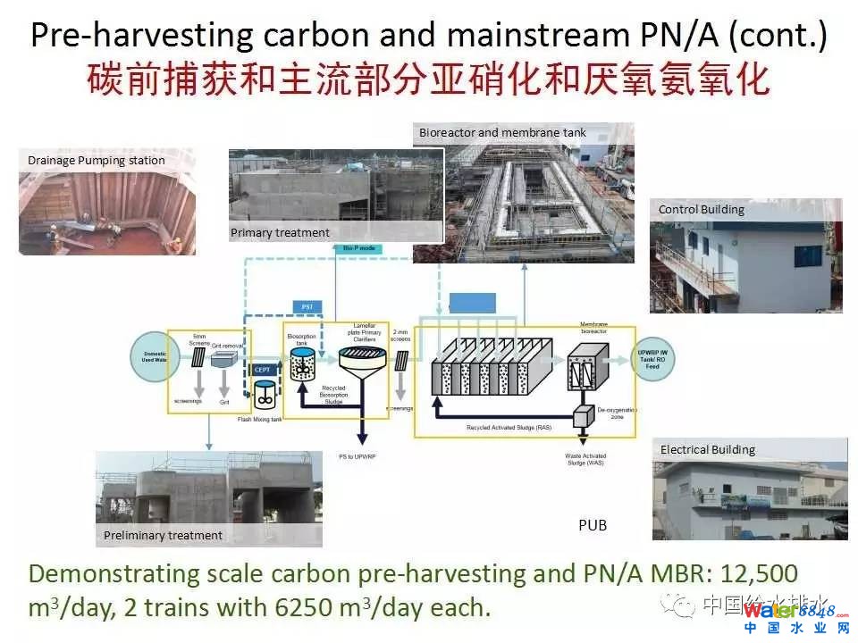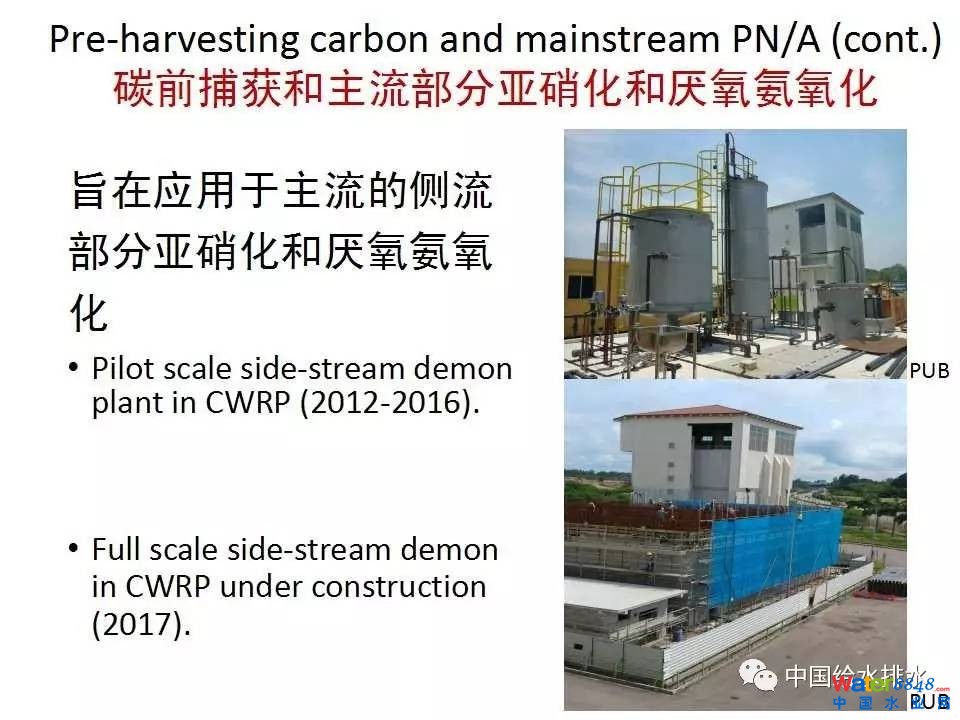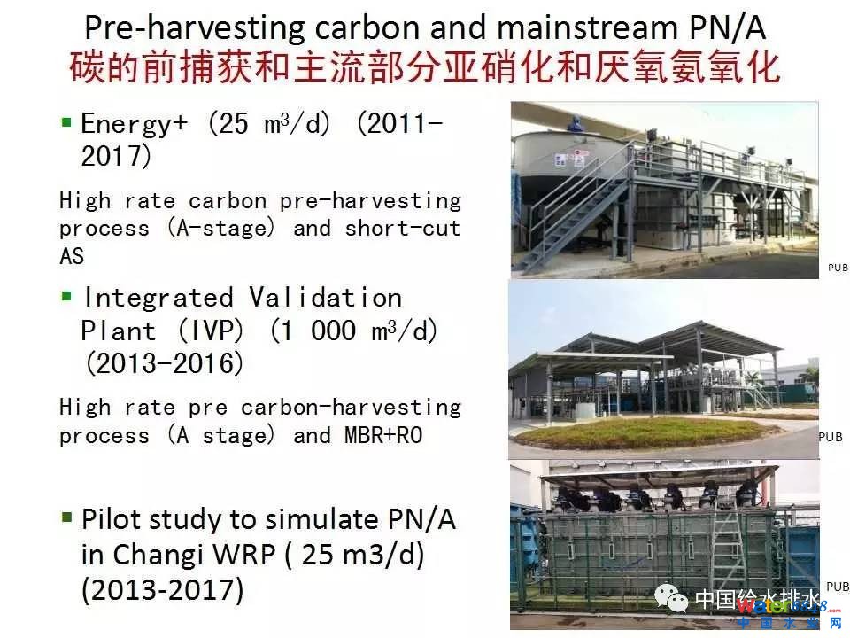 所以從2011年以來(lái),新加坡PUB做了一系列的研發(fā)項(xiàng)目,三個(gè)中試的項(xiàng)目就著眼于回答這些問(wèn)題。而最新的就是日處理1.2萬(wàn)噸稱之為示范廠的項(xiàng)目,是模擬今后的第二階段的污水處理,看看主流厭氧氨氧化能不能實(shí)現(xiàn)。
