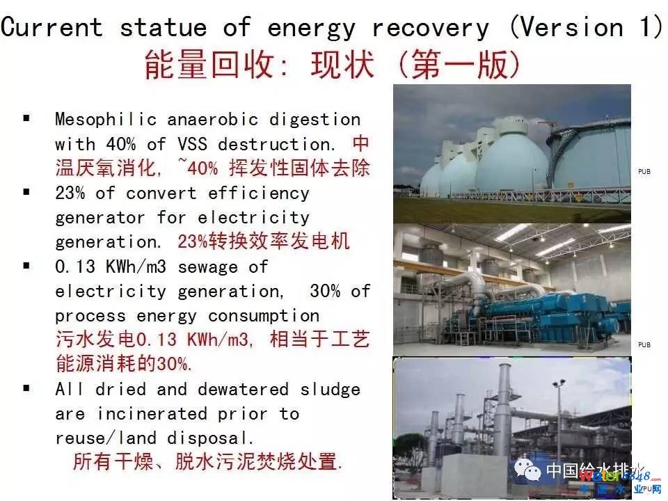 如果抓住這幾個(gè)環(huán)節(jié)以后,就可以有相當(dāng)?shù)碾娔艿幕厥,即我們稱之為能源回收的第一版。目前,在新加坡所有的污泥都進(jìn)行中溫的厭氧消化,固體揮發(fā)物的去除率是大約40%,達(dá)到國(guó)際上的公認(rèn)的水平。
