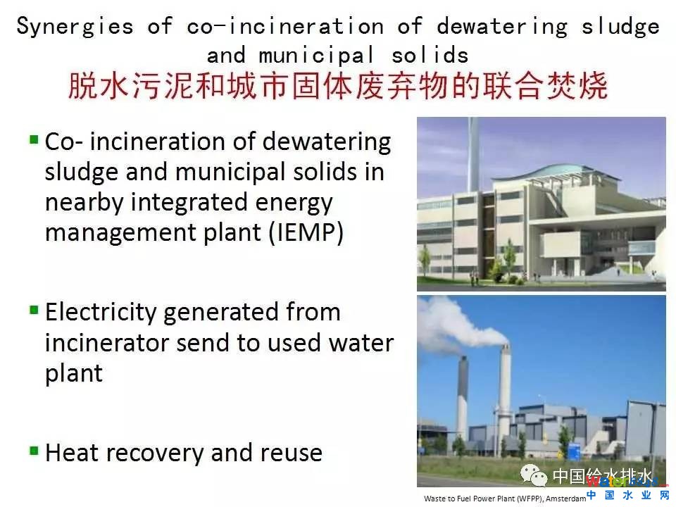 最后一個(gè)項(xiàng)目把新的污水廠里脫水的污泥就近送到旁邊的城市固體廢棄物處理廠,與城市固體一起焚燒,產(chǎn)生的電源送回到污水處理廠。
