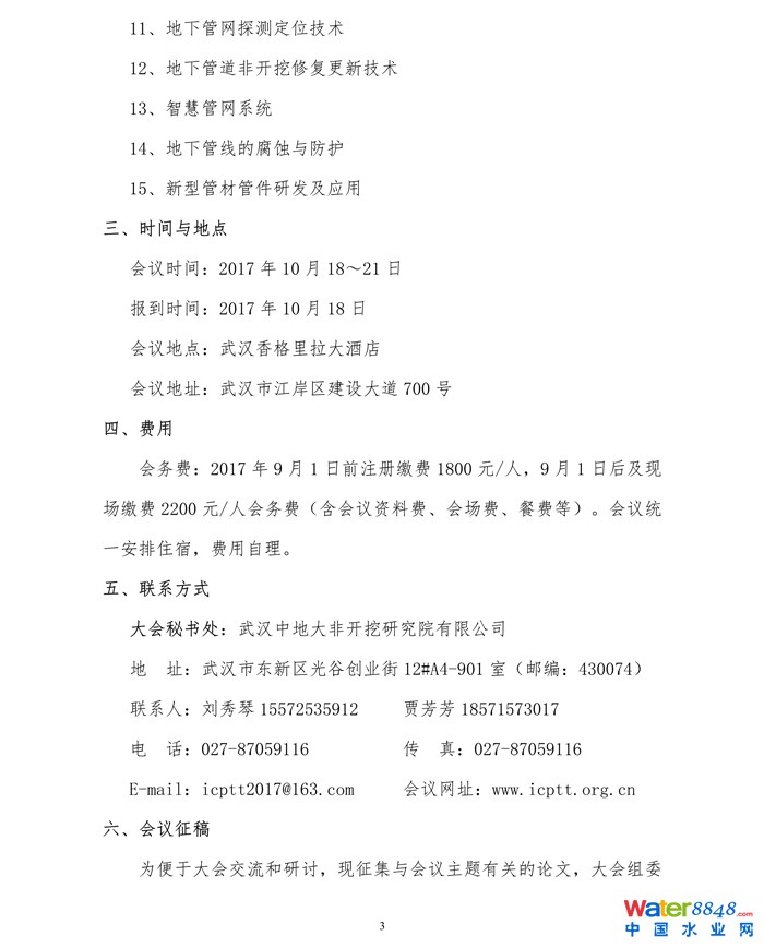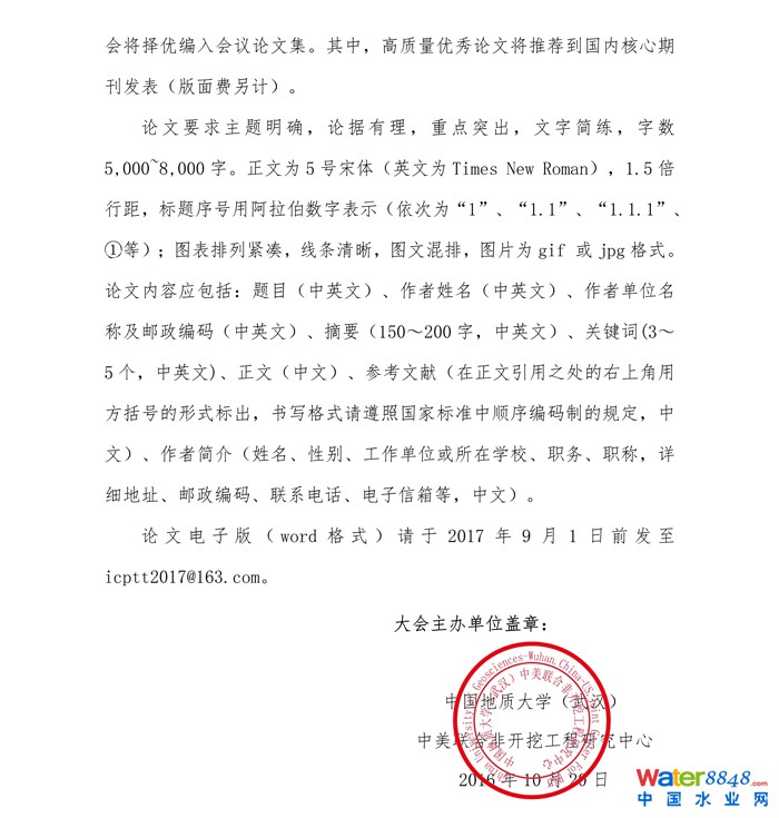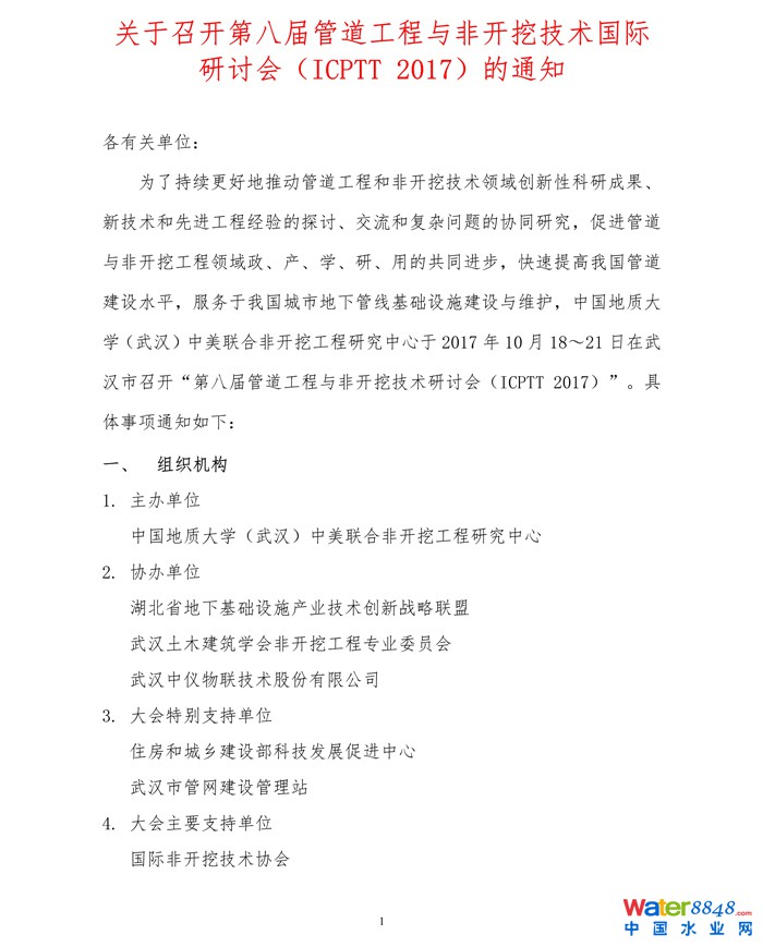 關(guān)于召開中美聯(lián)合非開挖工程研究中心 第八屆管道工程與非開挖技術(shù)國際研討會(ICPTT 2017)的通知