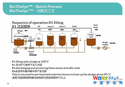 熱水解工藝的運行參數(shù)是運行溫度165度,停留時間30-45分鐘,運行壓力7巴,用11巴壓力的飽和蒸氣對污泥進(jìn)行加熱,進(jìn)泥濃度在16%DS以上。經(jīng)過多年的研究和工程經(jīng)驗反饋,目前威立雅的熱水解工藝分為間歇式和連續(xù)式兩種。