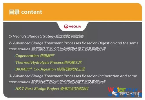 宮曼麗:尊敬的各位領(lǐng)導(dǎo),嘉賓,以及在座的各位同仁,大家上午好。今天要和大家一同探討的是威立雅的污泥處理技術(shù),包含基于與消化工藝相關(guān)的(熱電聯(lián)產(chǎn),熱水解,協(xié)同厭氧消化技術(shù))和污泥焚燒技術(shù)以及相關(guān)的案例。