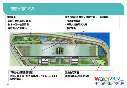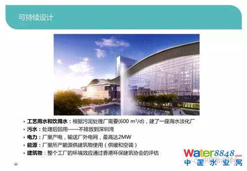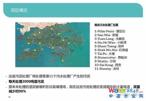 香港污泥焚燒是目前世界上最大的污泥焚燒項目。日處理量2000噸濕泥,含固率30%以上。該污泥處理廠接收來自于全港11座污水廠產(chǎn)生的污泥。這些污泥通過船運運輸?shù)轿勰嗵幚韽S所在地——屯門。項目的整體設(shè)計已通過香港環(huán)保建筑協(xié)會的評估,體現(xiàn)了可持續(xù)發(fā)展的理念。廠區(qū)內(nèi)部建有海水淡化廠,供工藝用水使用。污水全部回用,不像深圳灣排放。熱量全部內(nèi)部利用。
