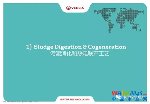 第一種要和大家分享的基于消化工藝的先進(jìn)的污泥處理技術(shù)是消化和熱電聯(lián)產(chǎn)。威立雅在中國有兩個消化和熱電聯(lián)產(chǎn)的案例,目前運行的都不錯。第一個業(yè)績是烏魯木齊河?xùn)|污水處理廠污泥消化和熱電聯(lián)產(chǎn)工程,該項目的處理規(guī)模是40萬噸污水/天。污泥消化工程包括兩期:一期4座消化池的改造和二期2座消化池的新建。一共6座消化池。配備有3臺500kw的沼氣發(fā)電機(jī),2臺500kw的沼氣鼓風(fēng)機(jī)。
