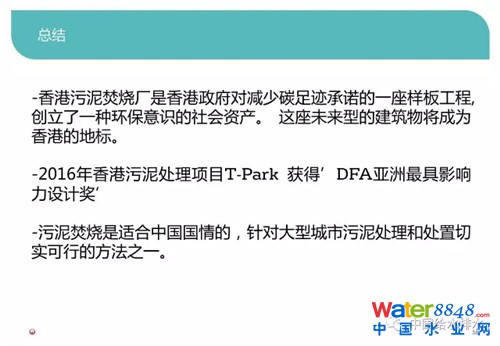香港污泥焚燒廠是香港政府對減少碳足跡承諾的一座樣板工程,是創(chuàng)立公眾環(huán)保意識的社會資產(chǎn)。這座未來型的建筑物將成為香港的地標(biāo)。2016年香港T-PARK污泥處理項目獲得香港設(shè)計協(xié)會DFA亞洲最具影響力設(shè)計獎。最后,污泥焚燒是適合中國國情的,針對特大型和大型城市污泥處理處置的切實可行的方法之一。