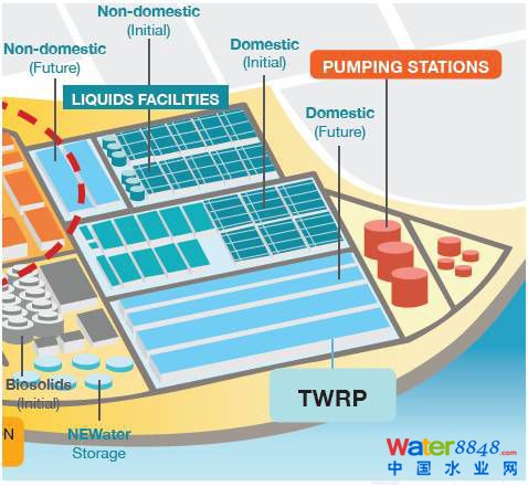 TWRP是新加坡深層隧道污水收集系統(Deep Tunnel Sewerage System—DTSS)第二階段的組成部分,是污水處理系統的核心部分,將于2025年建成。