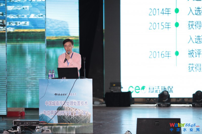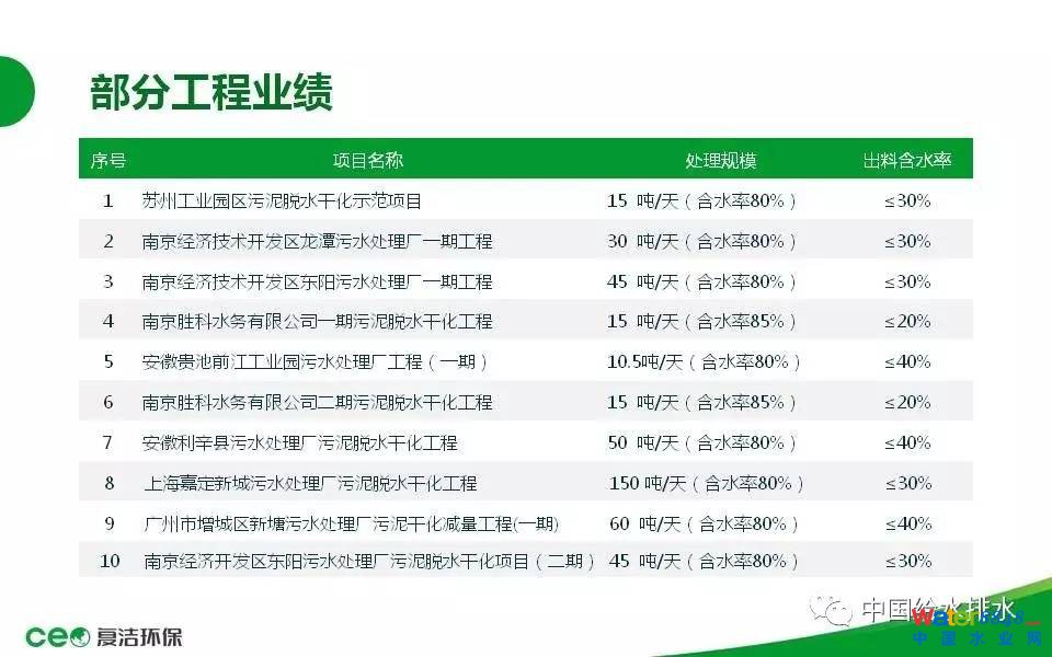 時間關(guān)系后面簡單一點,就是我們的技術(shù)是2011年開始工業(yè)化投產(chǎn),2012年、2013年的六七年時間里,我們承接了包括南京、安徽、上海、廣州等地十幾個項目,目前在運行的項目也有十幾個。這是蘇州工業(yè)園區(qū)的示范工程(10噸每天);南京開發(fā)區(qū)龍?zhí)段鬯幚韽S(30噸每天);南京經(jīng)濟開發(fā)區(qū)東陽污水處理廠(50噸每天),這是一期,二期也是我們做的,也是50噸的;勝科水務(wù)35噸,要求含固率達到20%以下;這是上海嘉定另外一個項目,這個項目規(guī)模設(shè)計150噸,這是去年年初已經(jīng)停產(chǎn)了,嘉定大政今年年初到現(xiàn)在運行5個月左右;這是上海的一個工業(yè)項目,晟碟半導(dǎo)體一個做U盤的單位的危廢處理項目。其他的時間有限,不一一介紹了。這是我們二維碼還有聯(lián)系方式,如果有交流的各位領(lǐng)導(dǎo)專家同行可以多多聯(lián)系。