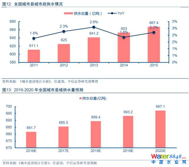 (注:截止2017年6月19日,住建部尚未發(fā)布2016年全國(guó)城市縣城市政供水量數(shù)據(jù))