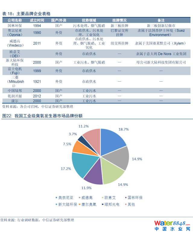 供水處理和紙漿漂白因?yàn)樯婕肮┧踩瓦B續(xù)生產(chǎn),對(duì)臭氧設(shè)備質(zhì)量要求較高,是外資品牌的優(yōu)勢(shì)領(lǐng)域。污水處理和煙氣脫硝相對(duì)更看重性價(jià)比,國(guó)產(chǎn)品牌因此具有相對(duì)優(yōu)勢(shì)。