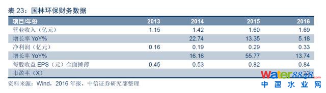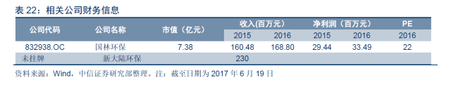 估值分析。國(guó)林環(huán)保于2015年7月在新三板做市,于2016年6月入選新三板首批創(chuàng)新層企業(yè)。截至2017年6月19日,總市值7.39億元,2016年P(guān)E均值 22X,具有較高的安全邊際。