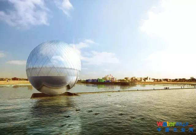 該裝置位于加利福尼亞圣莫妮卡地區(qū),是一個(gè)直徑40米的玻璃圓球,它能將海水淡化成淡水,為城市電網(wǎng)提供電力,是一個(gè)符合可持續(xù)發(fā)展理念的基礎(chǔ)設(shè)施。