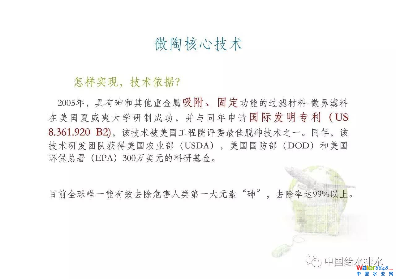 NSF/ANSI 53 - Drinking Water Treatment Units – Health Effects飲用水處理標準。這項認證確認了微陶公司的微鼻過濾器能將水砷濃度降低至美國環(huán)保署(EPA)和世界衛(wèi)生組織(WHO)設定的健康標準以下。微鼻MesoNose凈水壺由蘇州微陶公司(中國)研發(fā)生產(chǎn),目前已在美國和香港投入市場。