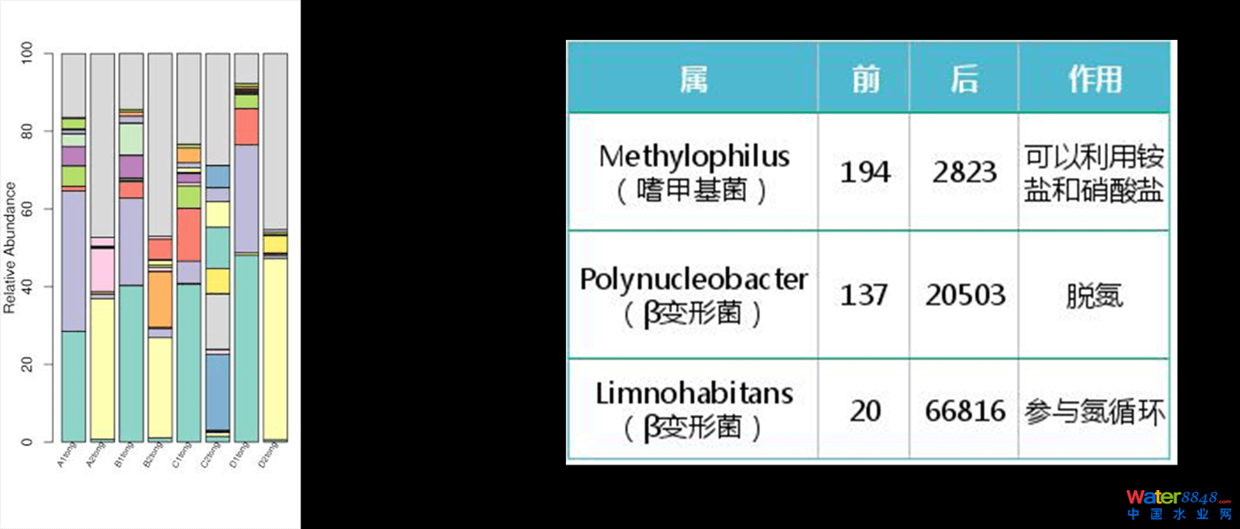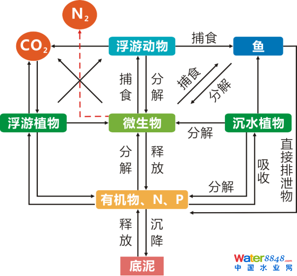 微生物的新陳代謝是水生動(dòng)、植物與水中營(yíng)養(yǎng)物質(zhì)(污染物)之間的紐帶;完善的微生物系統(tǒng)可把水中營(yíng)養(yǎng)物質(zhì)(污染物)向水生動(dòng)、植物轉(zhuǎn)移,通過構(gòu)建和延長(zhǎng)系統(tǒng)食物鏈,可以實(shí)現(xiàn)有效的物質(zhì)循環(huán)與能量流動(dòng)。