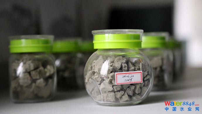 經(jīng)過(guò)低溫真空脫水干化的污泥塊。