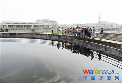 進水——一級處理——二級處理——三級處理——出水井,解說員帶領(lǐng)大家一路參觀了細格柵、曝氣沉砂室、二沉池、出水井以及中央控制室,為大家簡單地講解了污水處理廠工作原理和方法。經(jīng)過一系列工序的生活污水,歷經(jīng)20多個小時,最終流入出水井。親眼見到原來污濁不堪的生活污水經(jīng)過各道工序變得清澈,參觀者大呼驚奇。