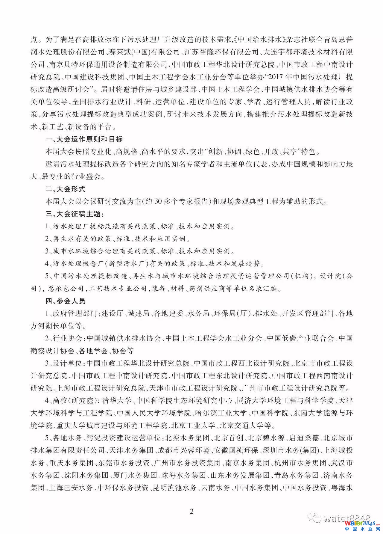 2017年中國污水處理廠提標(biāo)改造高級研討會邀請函暨征稿啟事