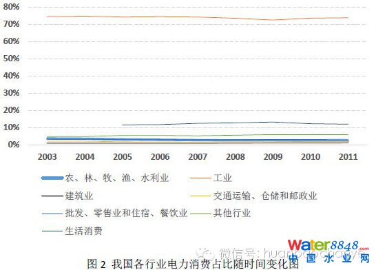 據(jù)統(tǒng)計(jì)局?jǐn)?shù)據(jù)顯示,我國水的生產(chǎn)和供應(yīng)業(yè)(包括自來水生產(chǎn)和供應(yīng)、污水處理及其再生利用及其他水的處理、利用與分配)電耗占全社會總電耗的0.8%,占居民生活消費(fèi)電耗的6%。