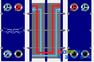 為保證氨制冷系統(tǒng)安全高效的工作, 阿法拉伐激光半焊接式板式換熱器作為蒸發(fā)器和冷凝器絕對(duì)是獨(dú)一無二的最佳拍檔。利用激光焊接在一起板片組作為氨介質(zhì)的通道, 保證了氨不會(huì)有任何泄漏;為了顯著提高能源利用效率和換熱效率,阿法拉伐通過對(duì)換熱器的軟硬件再開發(fā)推出了大溫差冰水制備技術(shù), 制備冰水的溫差可達(dá)到30度,通過精準(zhǔn)的計(jì)算,合理地分配各個(gè)流程的氨蒸發(fā)量,利用多流程設(shè)計(jì)精確地控制冰水出水溫度。
