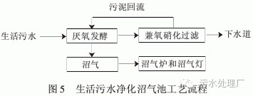 生活污水凈化沼氣池:新型生活污水厭氧凈化池(或稱城鎮(zhèn)生活污水凈化沼氣池)是一種小型分散化污水處理裝置。生活污水凈化沼氣池是在化糞池和沼氣池的基礎(chǔ)上發(fā)展起來(lái)的,解決了化糞池處理效果差、 沉積污泥多、沼氣池沼氣回收率低的弊端,其工藝流程見(jiàn)圖5。