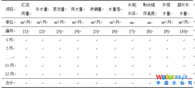 水量平衡計算過程可參照表3-2。