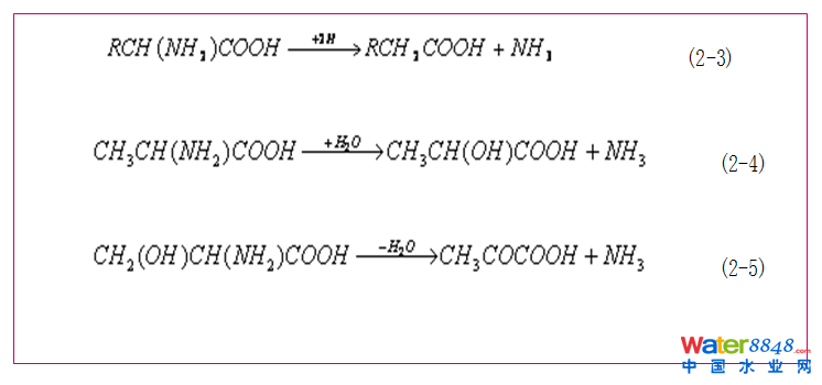 在厭氧或缺氧的條件下,厭氧微生物和兼性厭氧微生物對有機(jī)氮化合物進(jìn)行還原脫氨、水解脫氨和脫水脫氨三種途徑的氨化反應(yīng)。