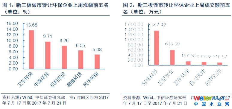新三板環(huán)保行業(yè)做市和協(xié)議轉(zhuǎn)讓板塊回顧。截至2017年7月21日,新三板環(huán)保板塊共有485家公司。上周(2017年7月17日至2017年7月21日),485家公司新三板環(huán)保公司中,有94家發(fā)生交易。(1)做市轉(zhuǎn)讓板塊,83家公司構(gòu)成的做市板塊中有45家發(fā)生交易。漲幅方面,板塊共有17家公司股票上漲,衛(wèi)東環(huán)保(832043.OC)漲幅13.68%,領(lǐng)跑整個(gè)板塊。成交額方面,成交額前三位的公司為易維科技(430261.OC,1367.42萬(wàn)元)、芝星炭業(yè)(832740.OC,613.39萬(wàn)元)、衛(wèi)東環(huán)保(832043.OC,157.58萬(wàn)元)。(2)協(xié)議轉(zhuǎn)讓板塊,402家公司構(gòu)成的協(xié)議板塊中有49家發(fā)生交易。漲幅方面,共有23只股票上漲,其中益諾歐(839748.OC)漲幅700.00%,為整個(gè)板塊最高。成交額方面,成交額前三位的公司分別為仕凈環(huán)保(835710.OC,4257.4萬(wàn)元)、金利股份(832081.OC,1636.60萬(wàn)元)、亞洲生態(tài)(836806.OC,1555.20萬(wàn)元)。