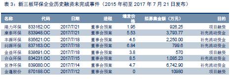 1.2 新三板一級(jí)市場(chǎng)環(huán)保行業(yè)定增總結(jié)(0717~0721)