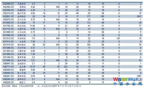 1.1新三板環(huán)保行業(yè)市場(chǎng)表現(xiàn)回顧(0717~0721)