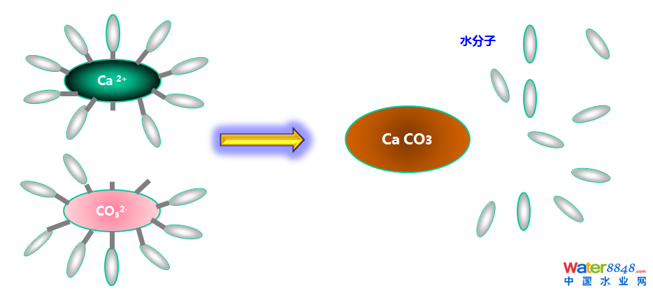 額外的好處: 水垢離子碰撞結(jié)晶,原先離子周圍的水分子也會被釋放出來,增加自由水分子含量,水的溶解力增強 。