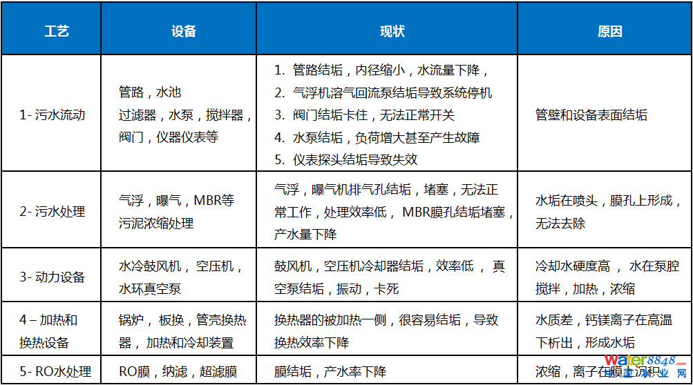 工業(yè)污水處理水量大,水質(zhì)復(fù)雜,有很多種工藝, 可能結(jié)垢的設(shè)備包括: