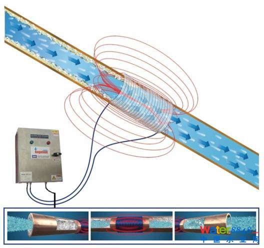 阻垢儀的掃描為 20次/秒,假設(shè)水的流速是2米/秒,水每流動 0.1米,水就會被磁場掃描處理一次,如果磁場覆蓋范圍是0.5米,水每流過感應(yīng)磁場一次,會被重復(fù)處理五次,這也是阻垢儀使用效果卓著的原因。