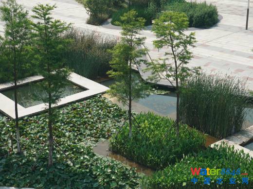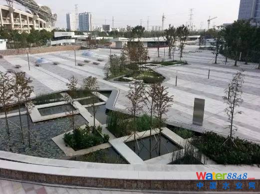 ③廣場的硬質(zhì)鋪裝也可設(shè)置雨水濕地或地下式蓄水池,用來收集周邊硬質(zhì)鋪裝的雨水徑流,凈化后可用于綠化澆灌、鋪裝沖洗。