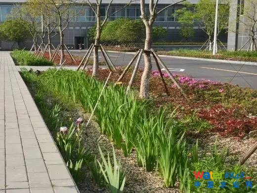 ③市政廣場周邊的綠地宜與道路、建筑設(shè)計相結(jié)合,可運用的海綿設(shè)施有生物滯留池、生態(tài)樹池、高位花壇、植草溝等。