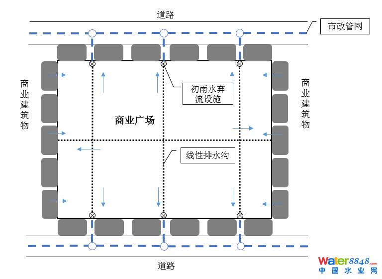 圖9 商業(yè)廣場雨水徑流系統(tǒng)
