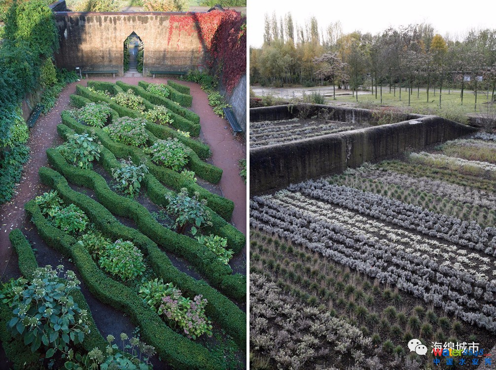 改造后:經過生態(tài)設計,由凈化水渠、凈水池、冷卻池等水體構成水公園。先通過園林收集雨水,再利用植物、動物或微生物的活動處理雨水和污水,進行循環(huán)再利用。